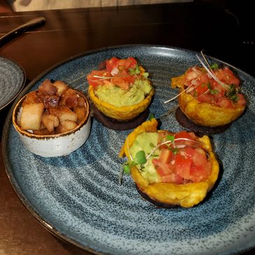 A taste of Mexican Delight, A blend of fresh diced avocado married with fresh lime juice, cilantro, onion and tomatoes with our special house special herbs, served with freshly made tortilla chips..